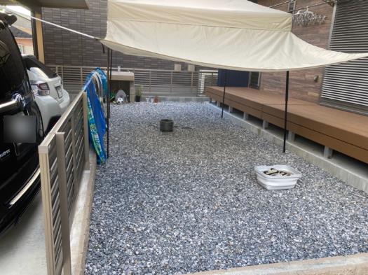 美濃市のO様邸で砂利敷きから人工芝に変更する施工を行ないました。